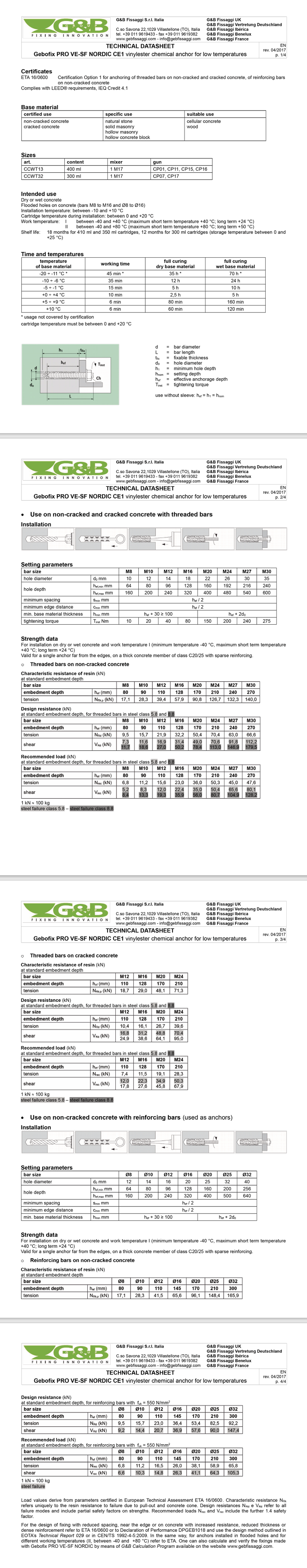 Táto chemická malta má špeciálne zimné zloženie pre aplikácie pri nízkych teplotách do -20 °C. Výrobok je schválený CE OPTION 1 a je certifikovaný na použitie so závitovými tyčami triedy 5.5, triedy 8.8, z nehrdzavejúcej ocele, ako aj s výstužnými tyčami.