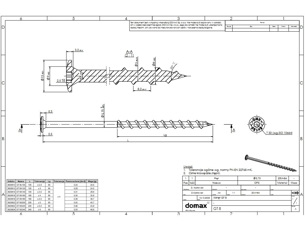 • Typ produktu: Skrutka do pórobetónu (Aerated concrete screw)