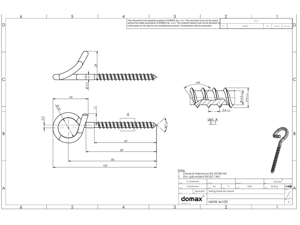 Hák so závitom do dreva/hmoždinky MHW 6x100