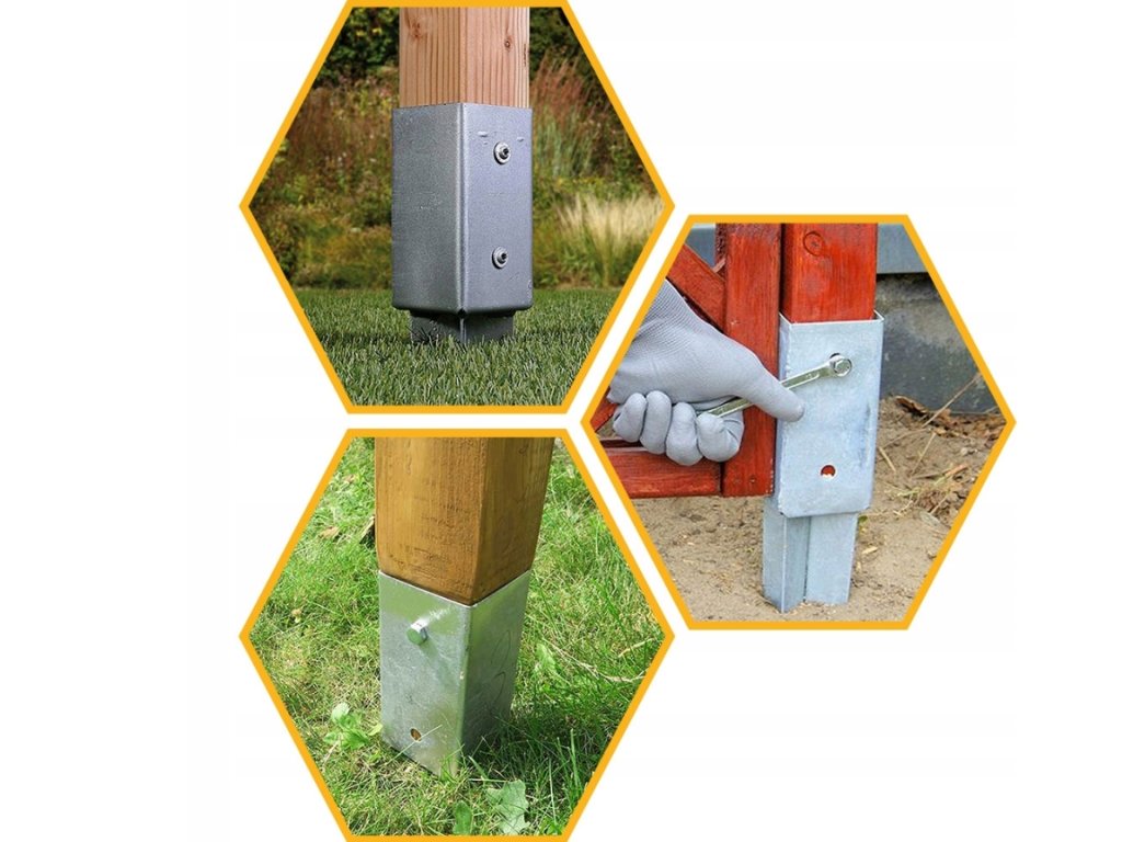 Zatĺkacie základne uľahčujú montáž drevených prvkov a zabezpečujú správnu dilatáciu dreva od podkladu. 550 mm vysoká základňa zaisťuje pevné a profesionálne spojenie konštrukčných prvkov.