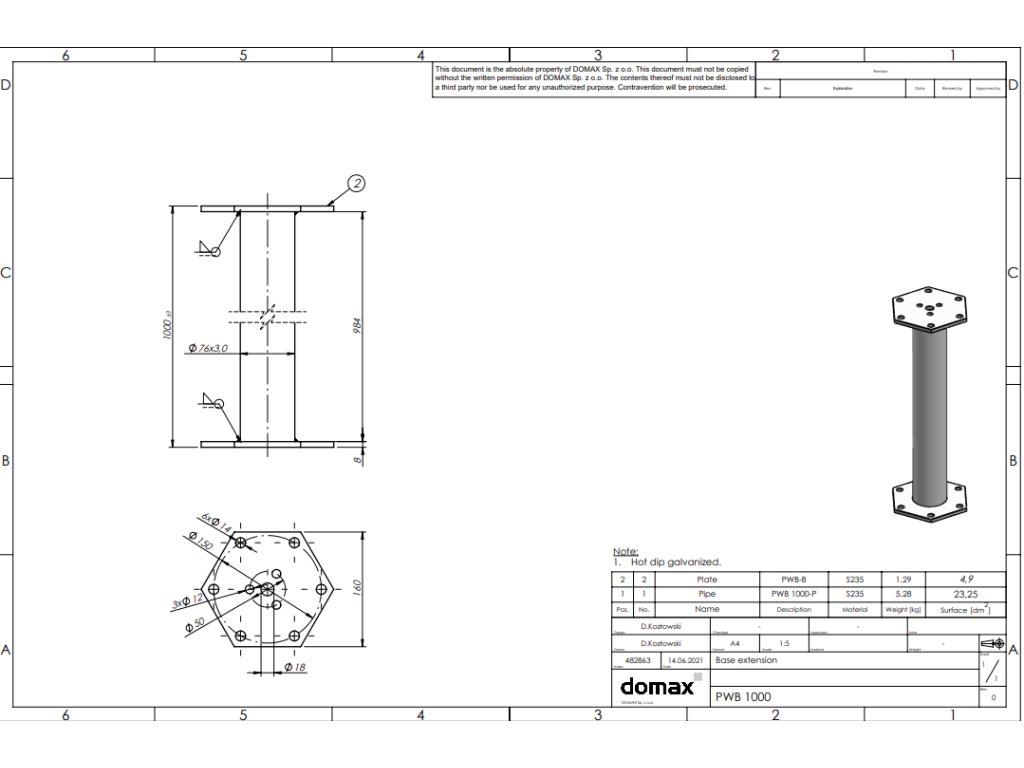 Predĺženie základne PWM so šesťuholníkovou prírubou umožňuje inštaláciu základne aj na nerovnom teréne a zároveň zaisťuje dostatočnú odolnosť.