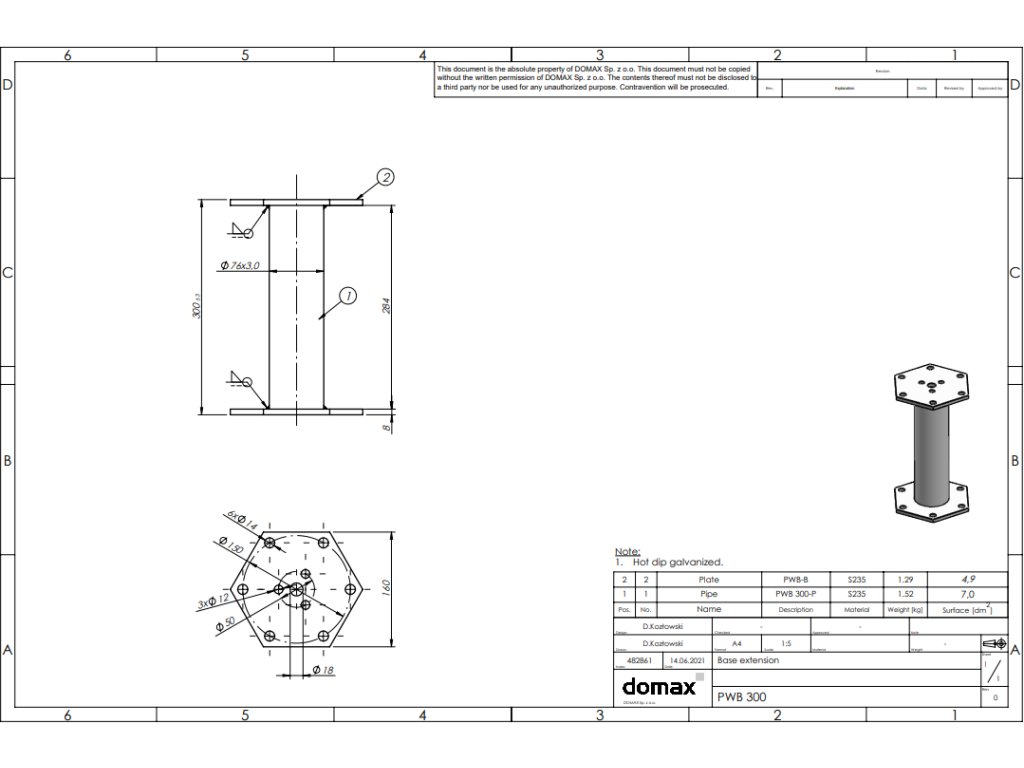 PWB 300 Predĺženie základne pre PWM 185x160x300x8,0