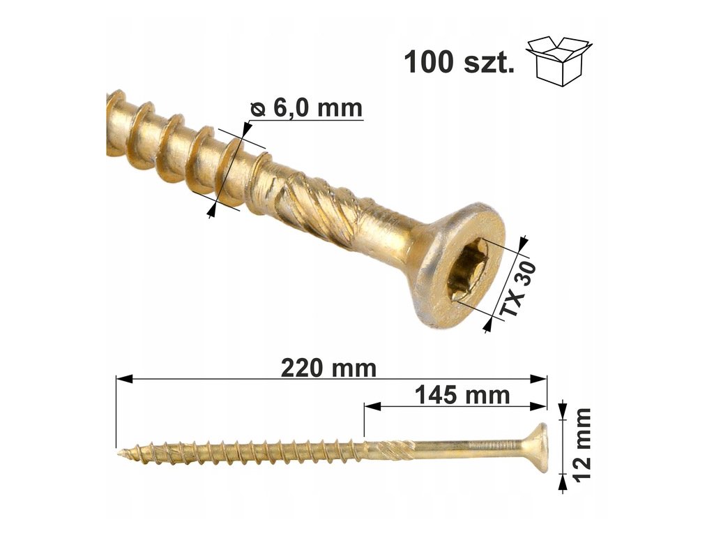 TX 6x220mm - 1 Kartón (4x100 ks) - Skrutky / Vruty do dreva so zápustnou hlavou, WKCS
